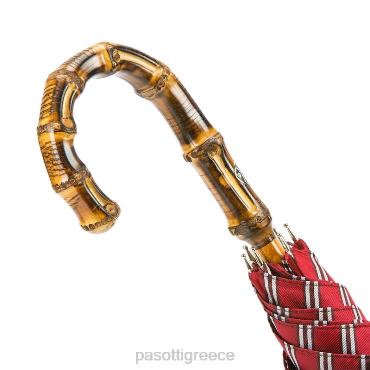 κλασική ριγέ ομπρέλα, λαβή από μπαμπού