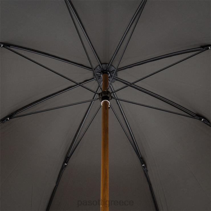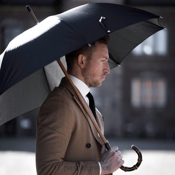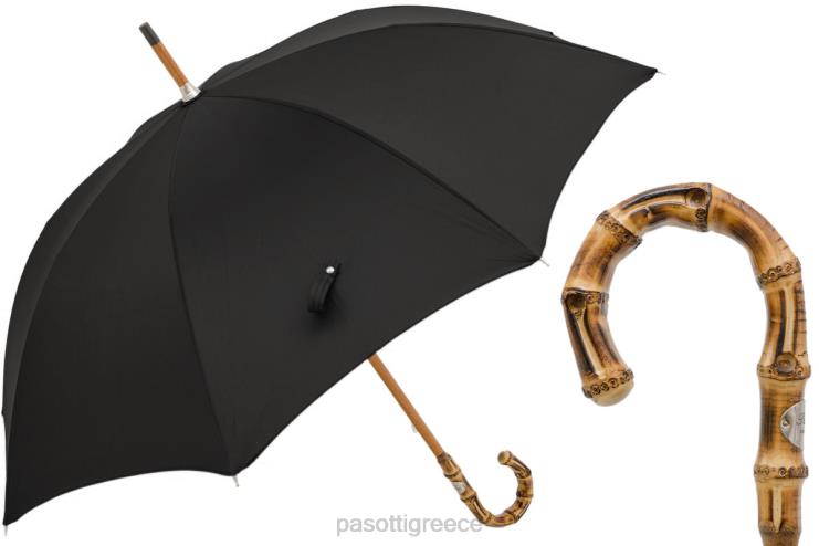 μαύρη ομπρέλα με λαβή από μπαμπού