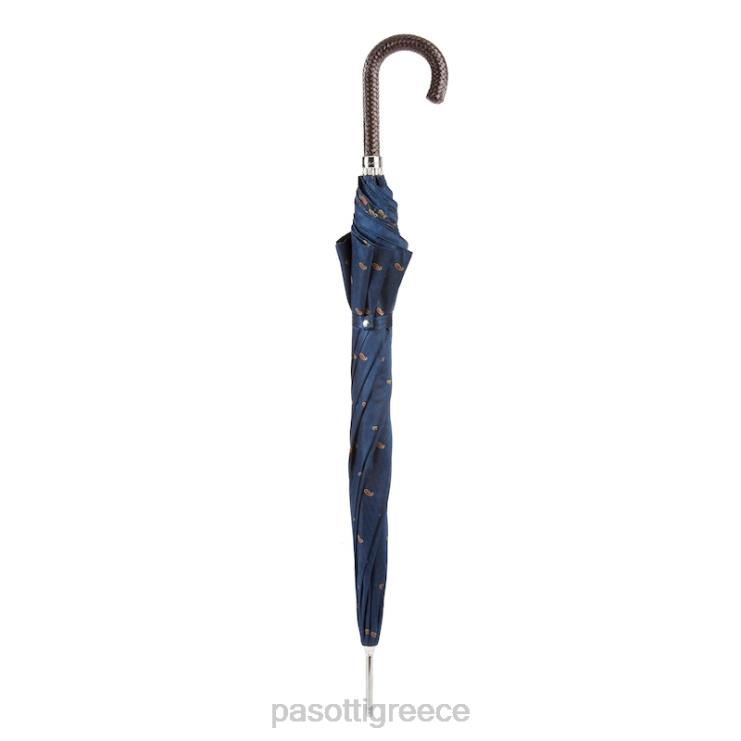 κλασική ομπρέλα με πλεκτό δερμάτινο χερούλι