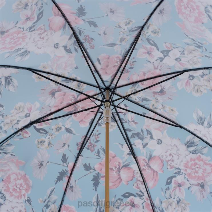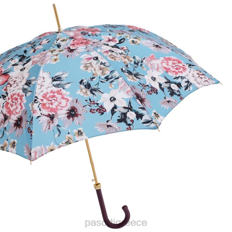 ανθισμένη ομπρέλα με δερμάτινη λαβή μπορντώ