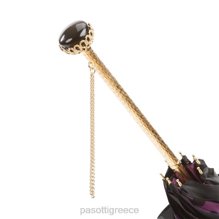 μαύρη ομπρέλα με μωβ κουκκίδες εσωτερικό, διπλό ύφασμα