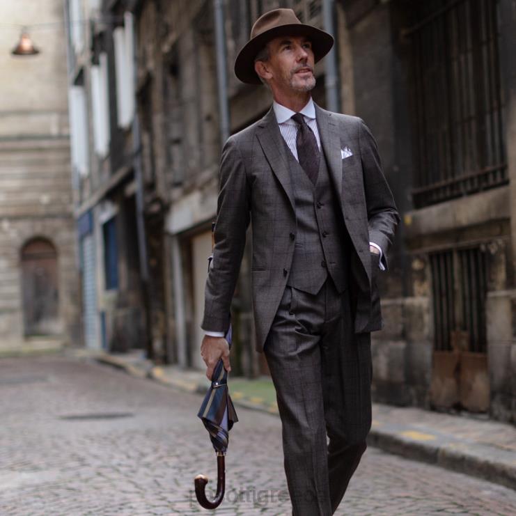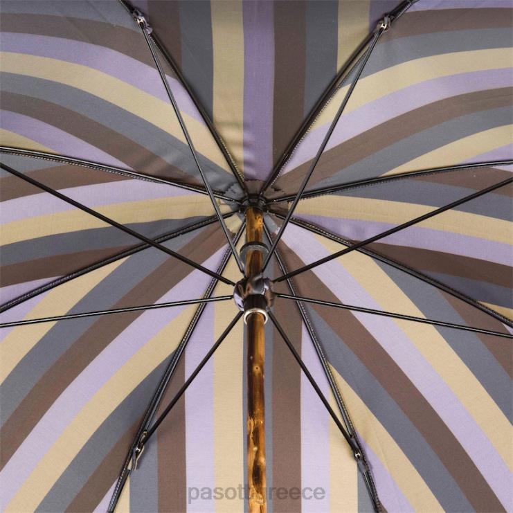 ομπρέλα μασίφ ριγέ καστανιά με άκρο πόμολο