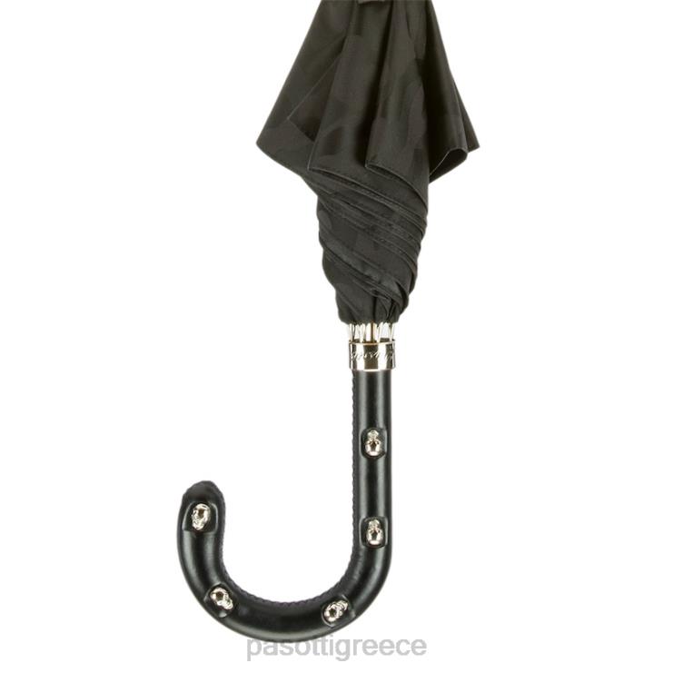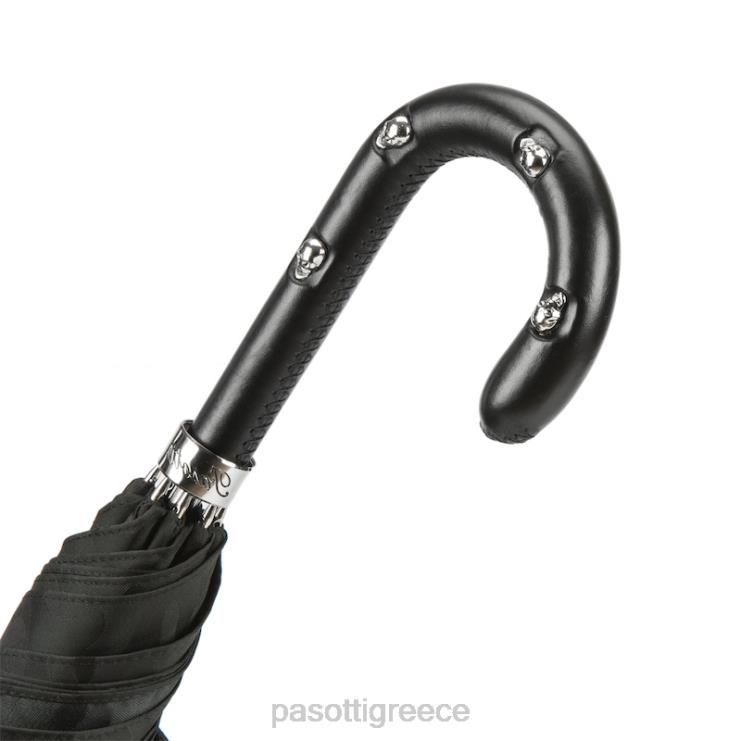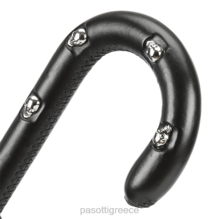 μαύρη ομπρέλα παραλλαγής, δερμάτινη λαβή με κρανία