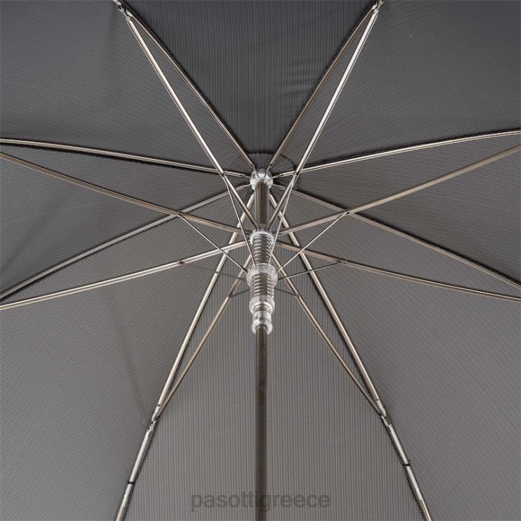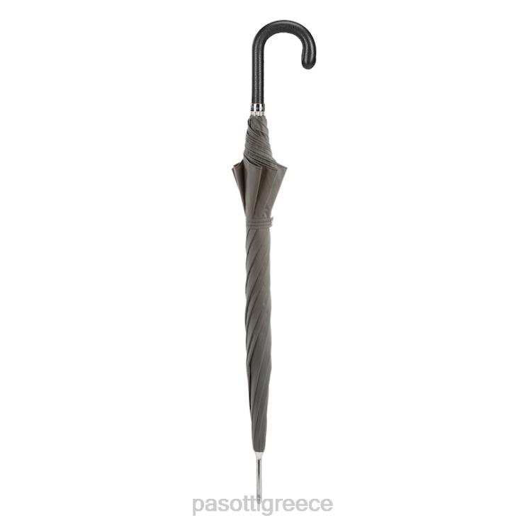 κομψή γκρι ομπρέλα με δερμάτινο χερούλι