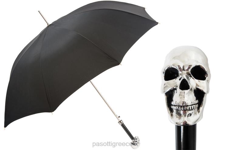 ασημένια ομπρέλα κρανίου, με θήκη και δαχτυλίδι
