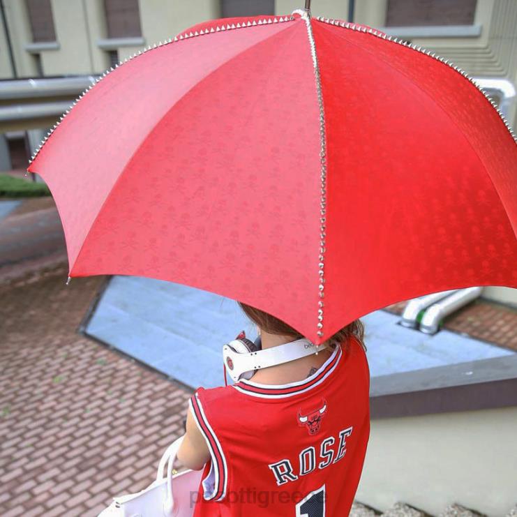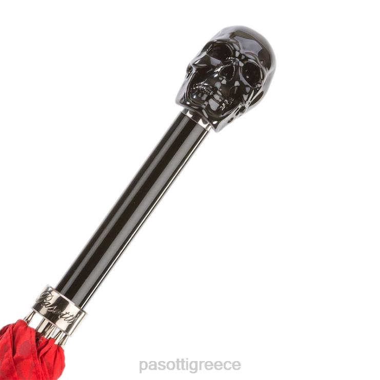 κόκκινη ομπρέλα με καρφιά και μαύρη λαβή κρανίου